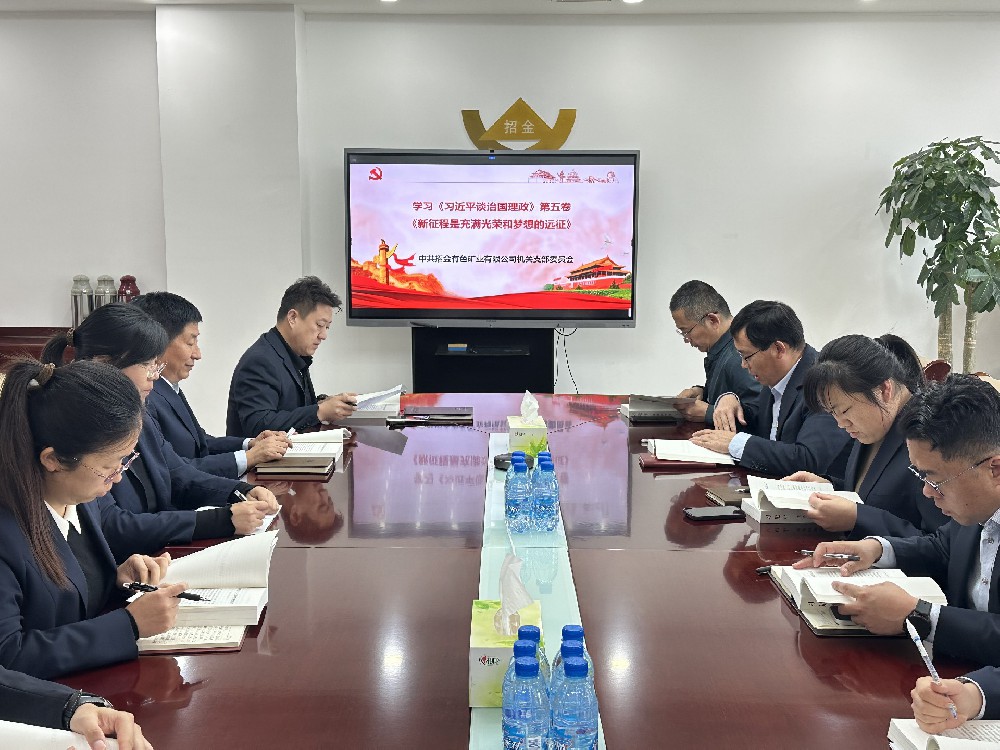 近日,招金有色举办党建时政进支部-特色主题党日活动,组织开展了《习近平谈治国理政》第五卷中《新征程是充满光荣和梦想的远征》章节的学习,全体党员干部参加活动。