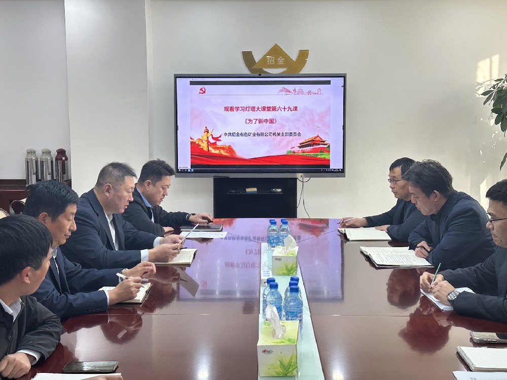近日,招金有色举办党建时政进支部-特色主题党日活动,观看“灯塔大课堂”第六十九课《为了新中国》,全体党员干部参加活动。