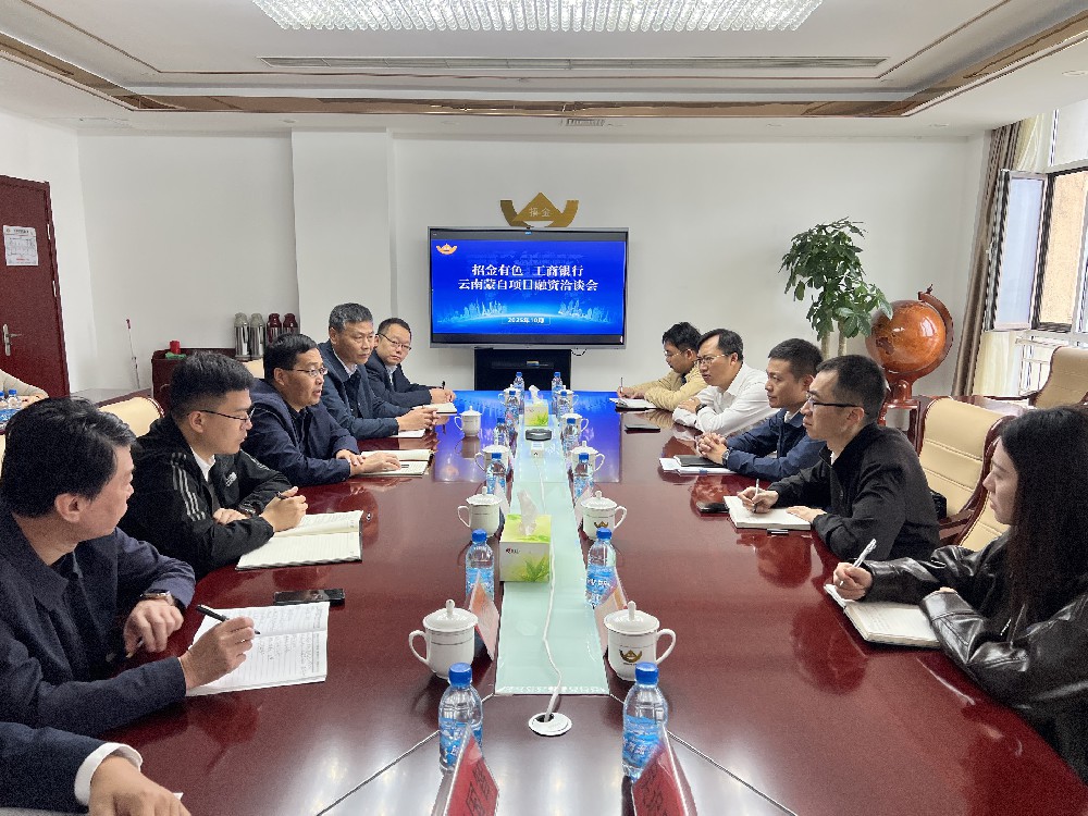 为持续深化投资并购整合、拓宽融资渠道,为招金有色发展筑牢资金 “压舱石”,10月16日,招金有色与工商银行围绕蒙自一智矿业专项金融合作举行洽谈会。招金有色总经理助理张守德,工商银行烟台分行行长助理王其端、省行投行部科长姜绪新、招远支行行长王宝金及双方业务负责人参会,就深化银企协同、共促发展进行深度交流。